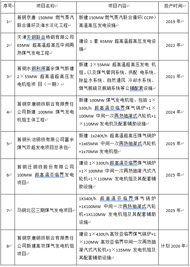 2.首鋼遷鋼100MW超高溫亞臨界發(fā)電項(xiàng)目發(fā)電效率為40.5%,超高溫亞臨界發(fā)電技術(shù)適用于鋼廠產(chǎn)能1000t/a及以上