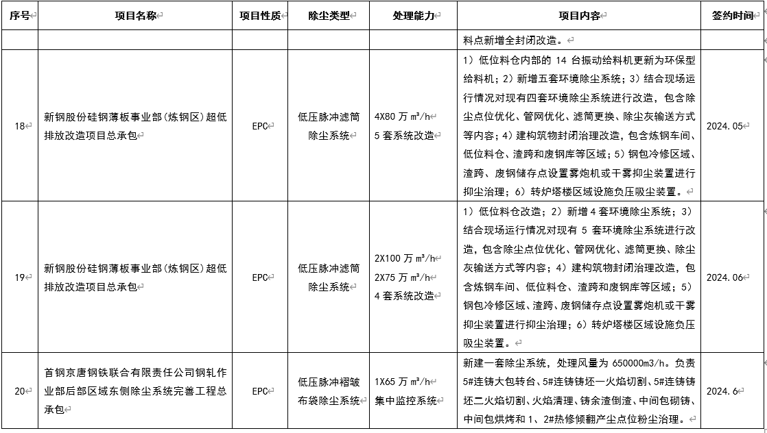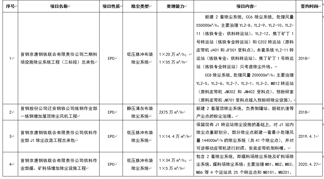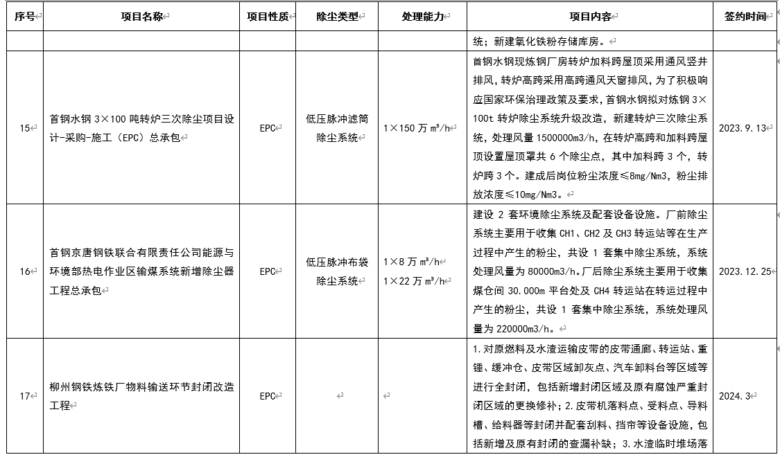 該技術特別適用于處理高塵、高濕、粘度大的煙氣,并成功應用于首鋼京唐燒結混合機除塵、馬鋼四鋼軋爐渣間環境改造、馬鋼四鋼軋總廠煉鋼區域環保治理改造等項目,可充分滿足鋼鐵企業超低排放的最新環保要求。
