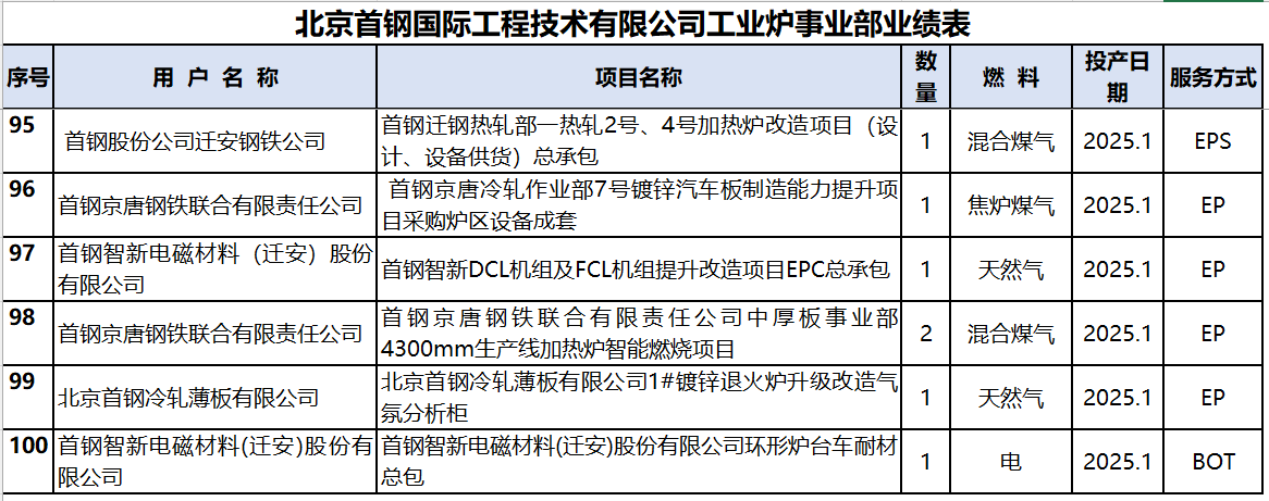 首鋼國際工程公司工業爐事業部是中國優秀的從事鋼鐵行業熱工領域節能減排、環保技術和工程設計、產品開發及工程總承包的技術服務商,在大型板坯/方坯加熱爐、特種鋼加熱爐、高溫硅鋼加熱爐、取向硅鋼電磁感應加熱爐、取向硅鋼高溫環形退火爐、高端硅鋼熱處理項目連續退火機組漂浮式干燥爐、大型環形加熱爐、臺車式熱處理爐以及輥底式熱處理爐等爐窯方面形成了獨特的技術優勢和豐富的管理經驗。首鋼國際工程公司工業爐事業部以領先的技術為基礎、優質的產品為保證、顧客的滿意為目標,將專業化技術服務貫穿于項目建設的全過程,最終和客戶實現共贏。