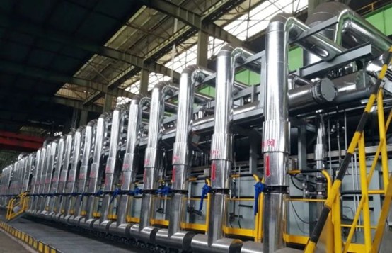 在集成國內外余熱利用先進技術的基礎上,采用不同的余熱利用技術與方案,并形成工業爐的專有技術。在原加熱爐排煙系統的空氣預熱器和煤氣預熱器后,再增設兩級蒸發器,使煙氣溫度由約300°C進一步降低到約150°C,回收的煙氣余熱單臺加熱爐多產生蒸汽約6t/h。該項技術取得國家發明專利,專利號:ZL20182007879.2。