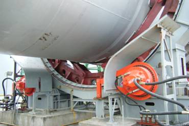 4) 回轉(zhuǎn)窯液壓擋輪技術(shù)——自動(dòng)調(diào)整回轉(zhuǎn)窯窯位,延長(zhǎng)托輪使用壽命